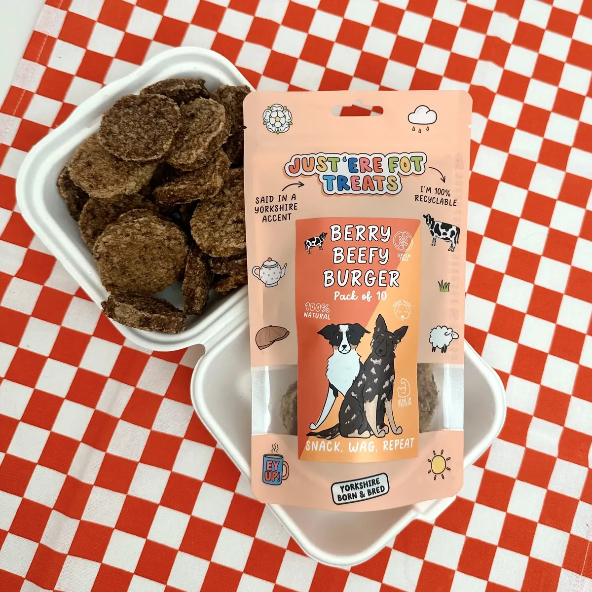 A bold and tasty reward from the Nowt Fried menu! Made with 95% natural ingredients and 5% rapeseed extract, these soft burgers are perfect for snack time or training.